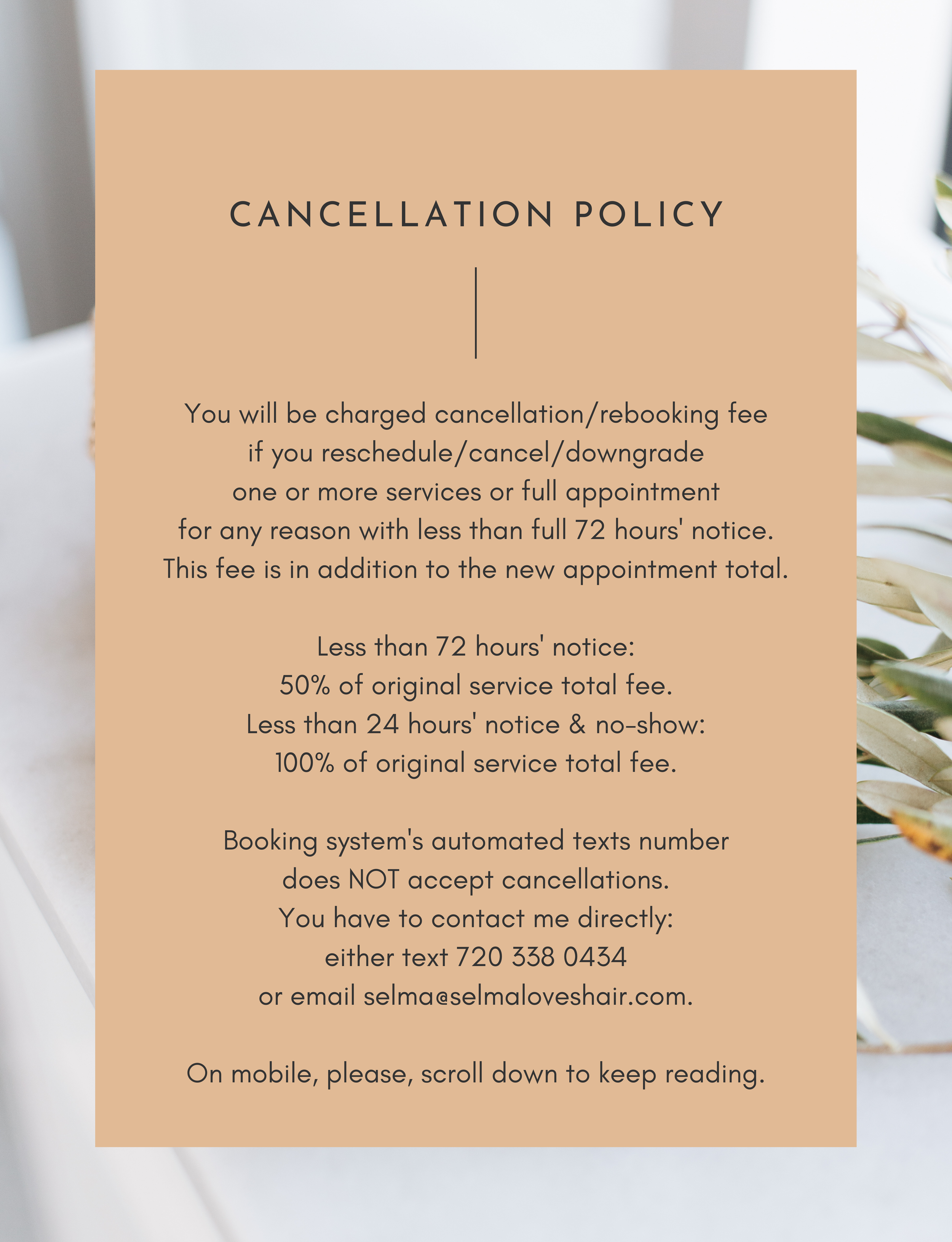 CANCELLATIONS & SALON POLICIES